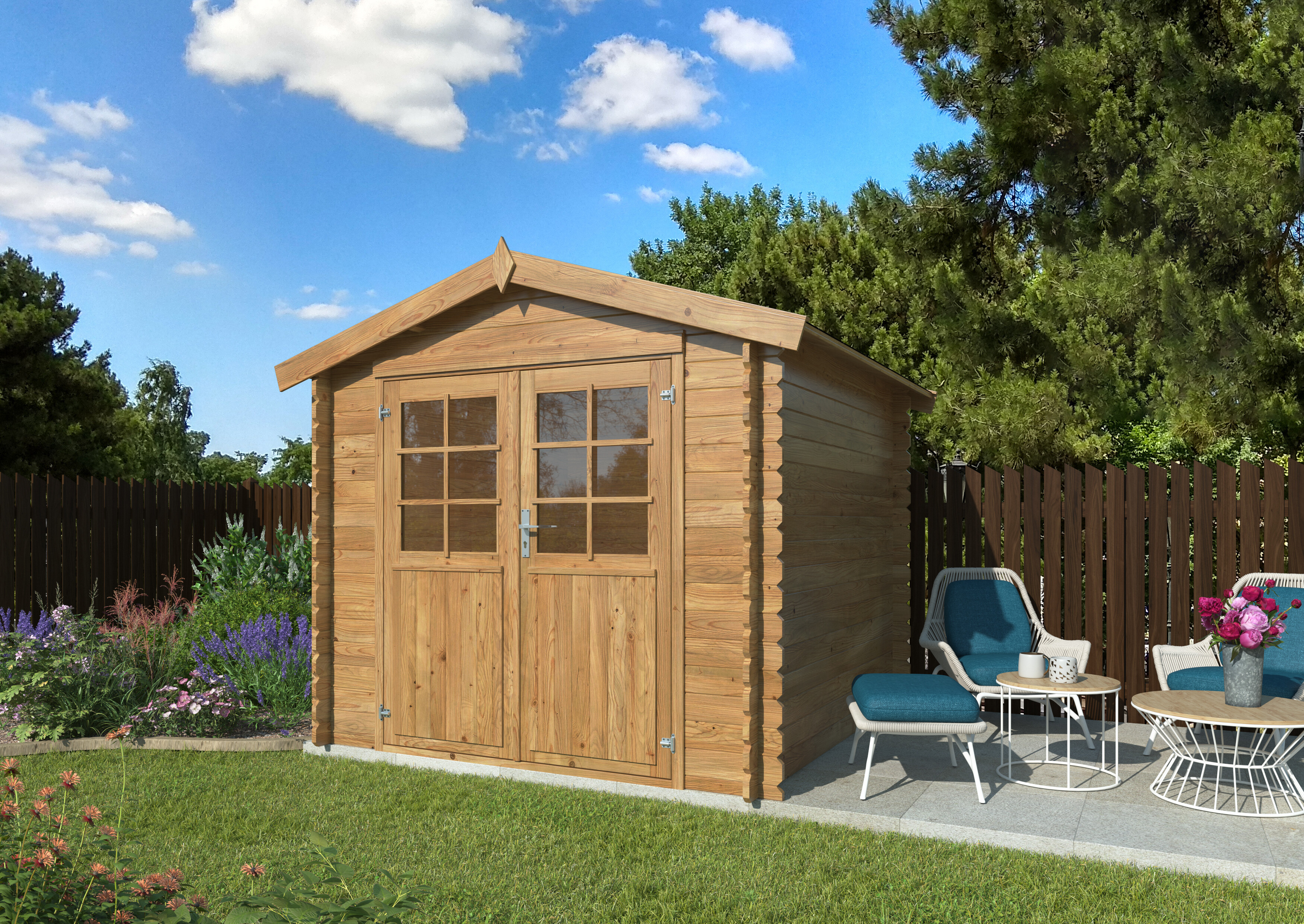 Casetta di legno in Abete impregnato in autoclave color marrone e essicato
