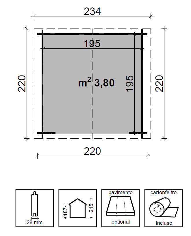 Dimensioni interne cm 195X195