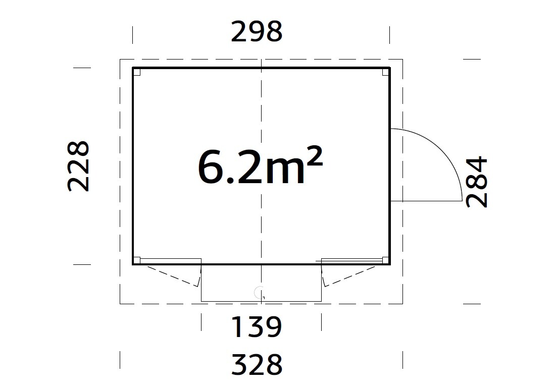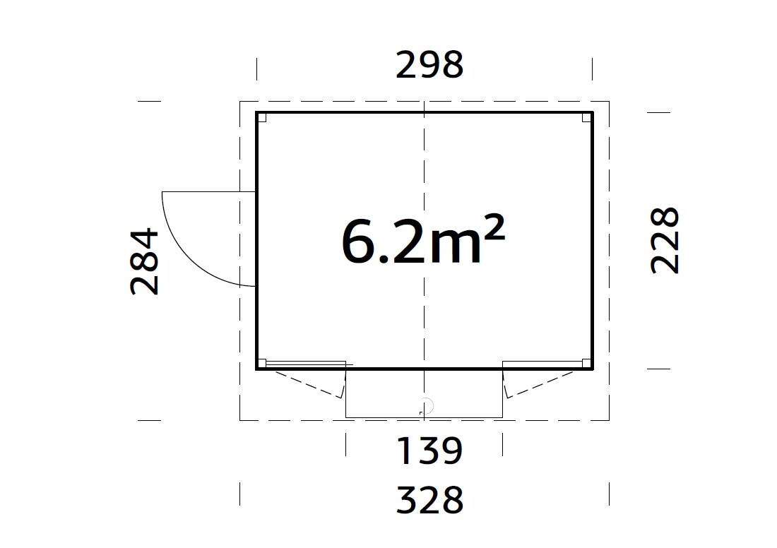 Dimensioni a terra cm 298x228