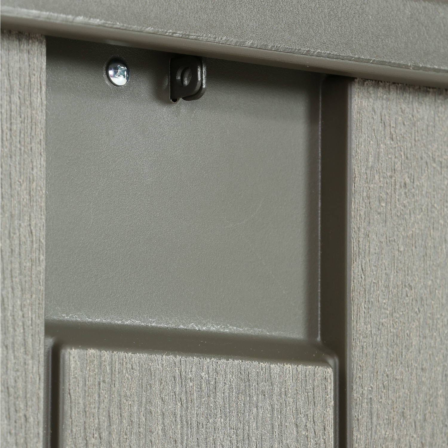 Colore grigio con venature effetto legno, finitura spazzolata ruvida.